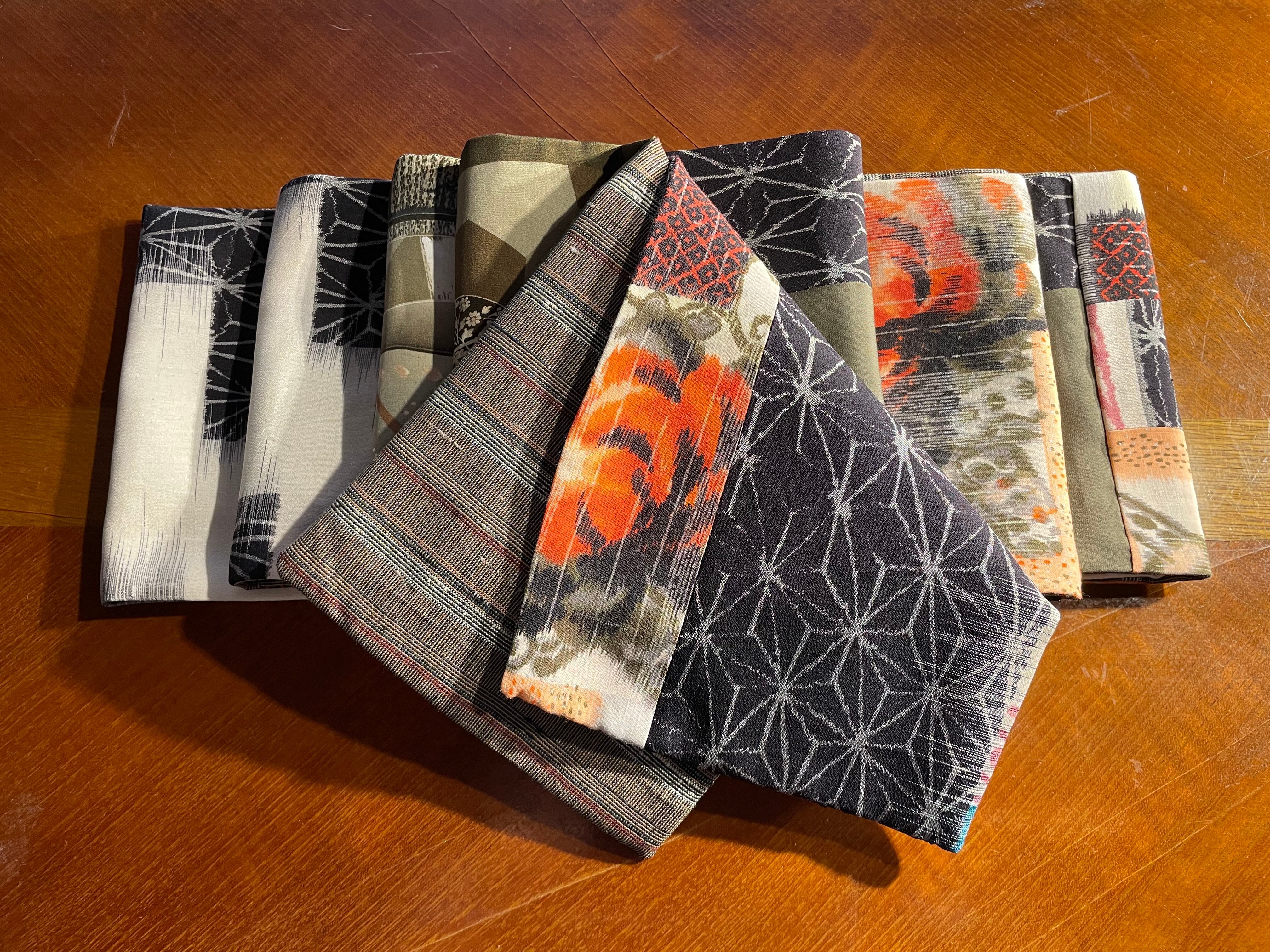 表面は麻の葉柄の古布や茶器の柄の古布を使用いたしました。