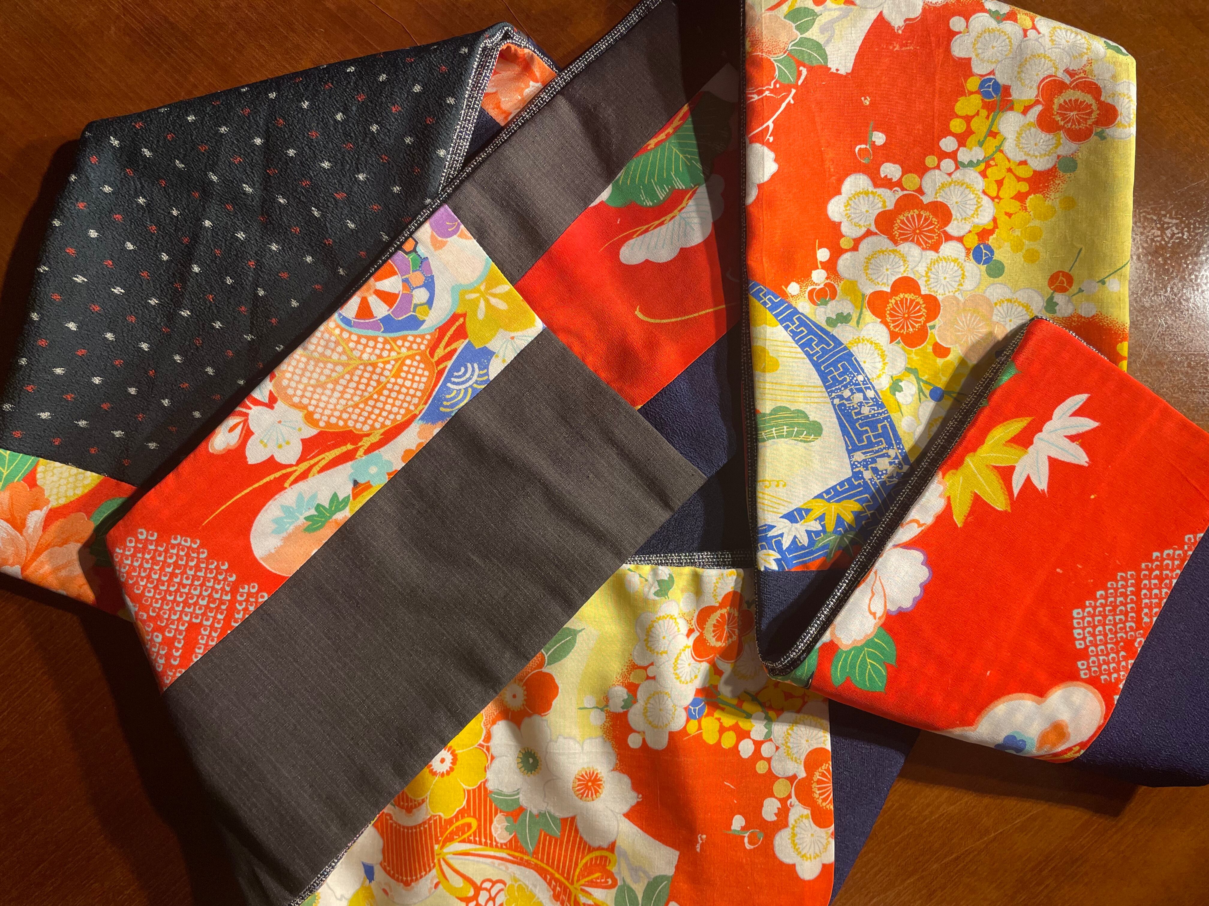 たくさんの古布や反物を使い