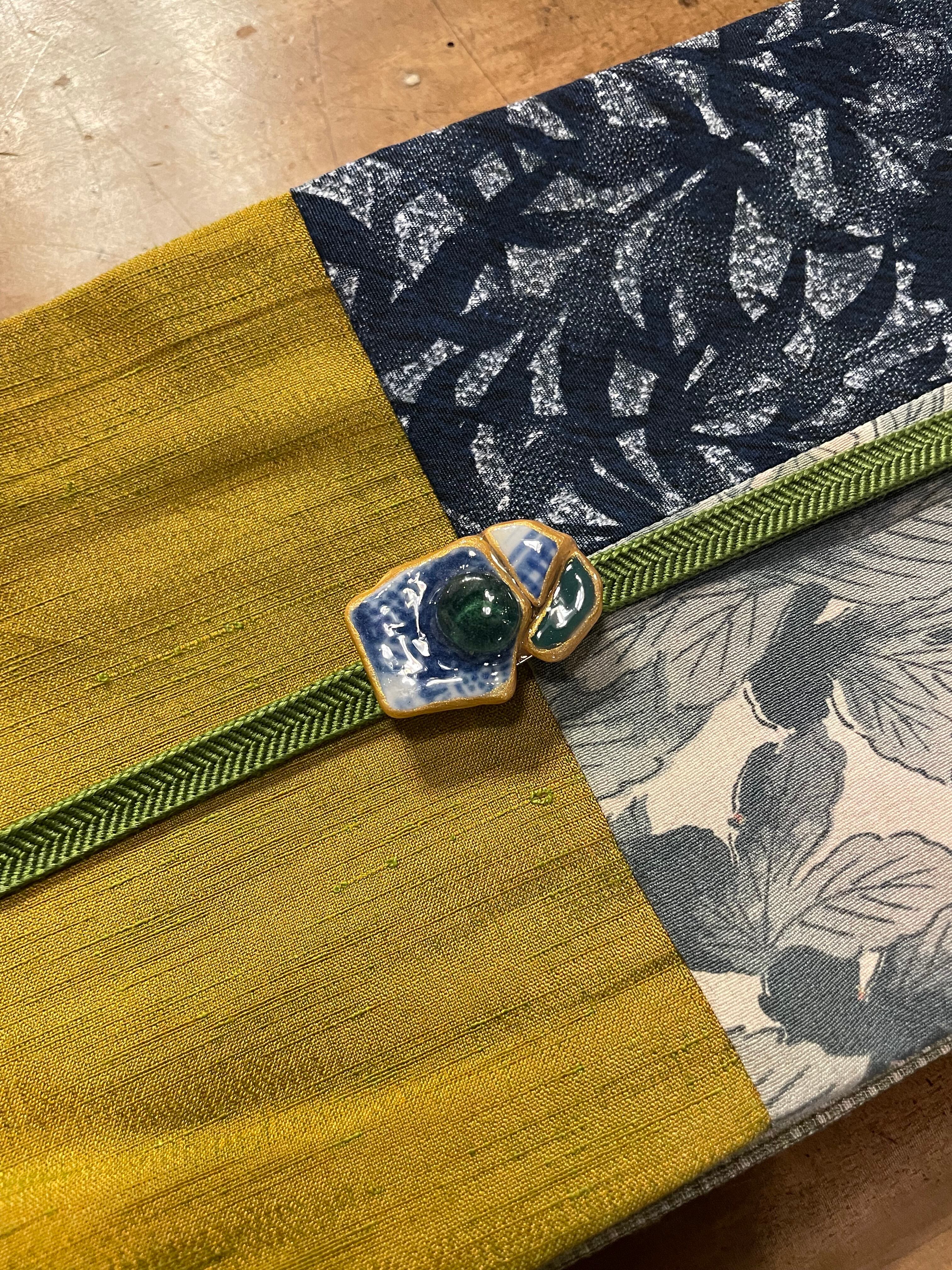 和風なシー陶器と美しいシーグラスとを組み合わせた、アートのような帯留です。
