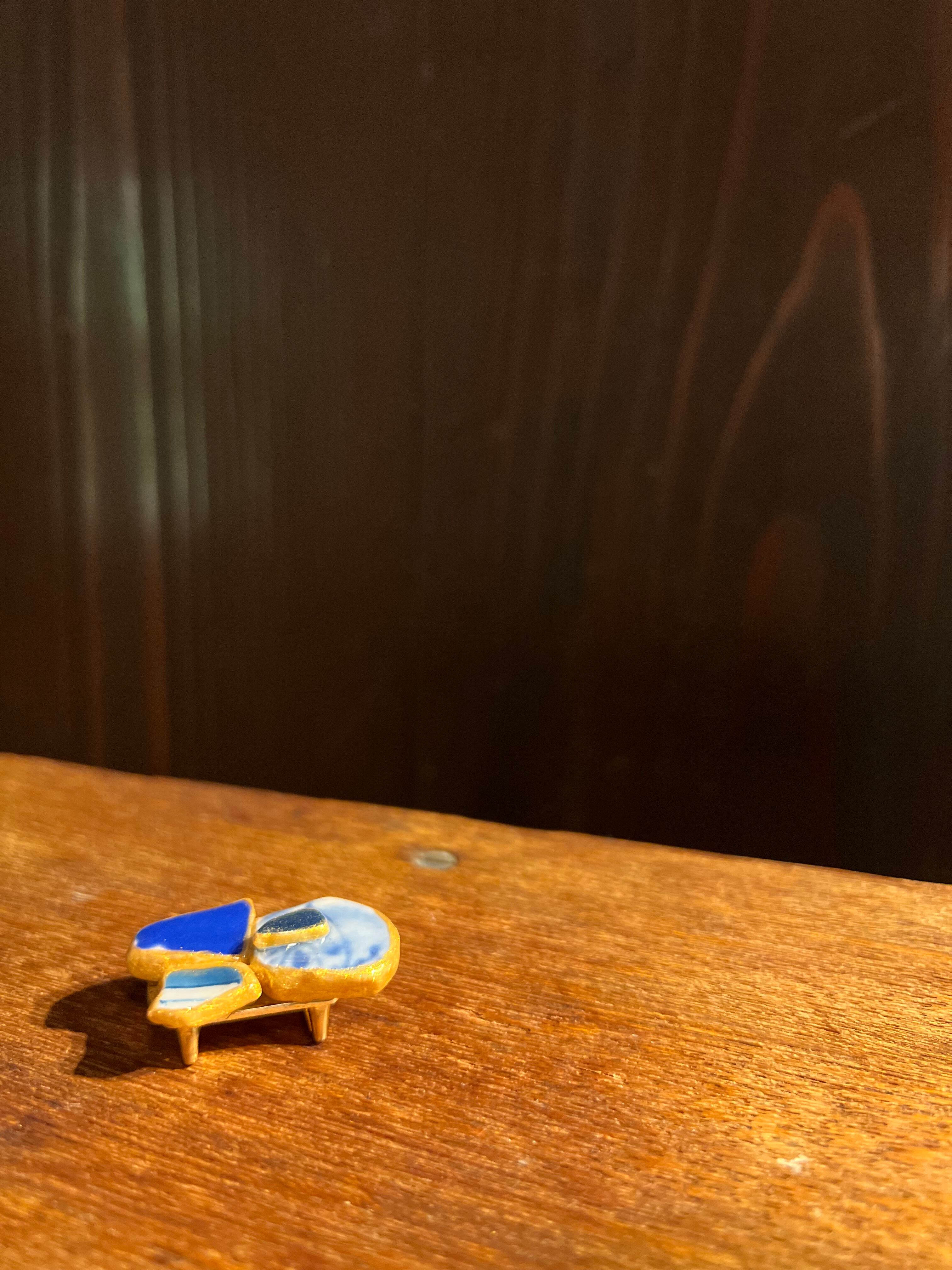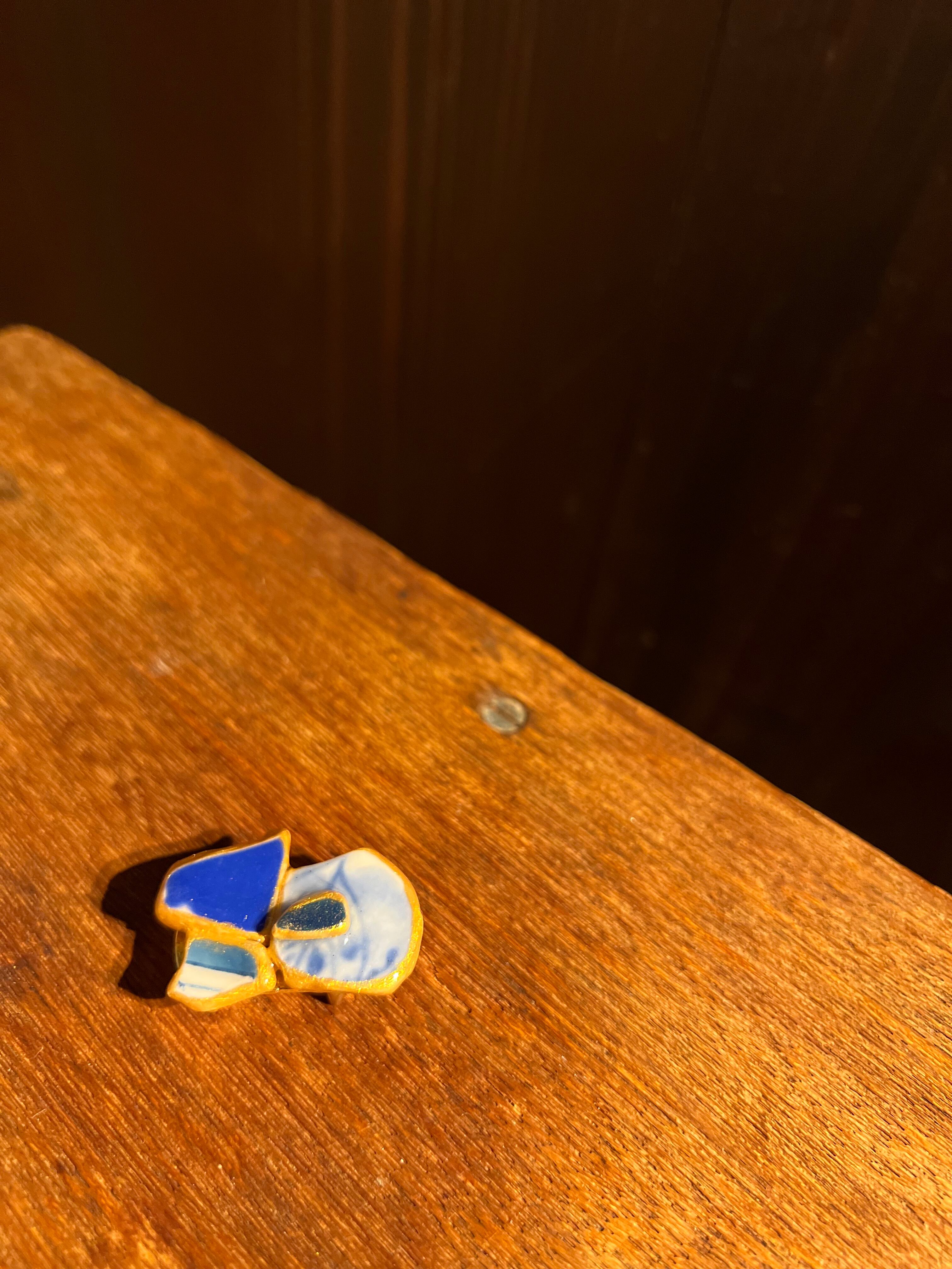 シー陶器とシーグラスを金継ぎ風帯留です。