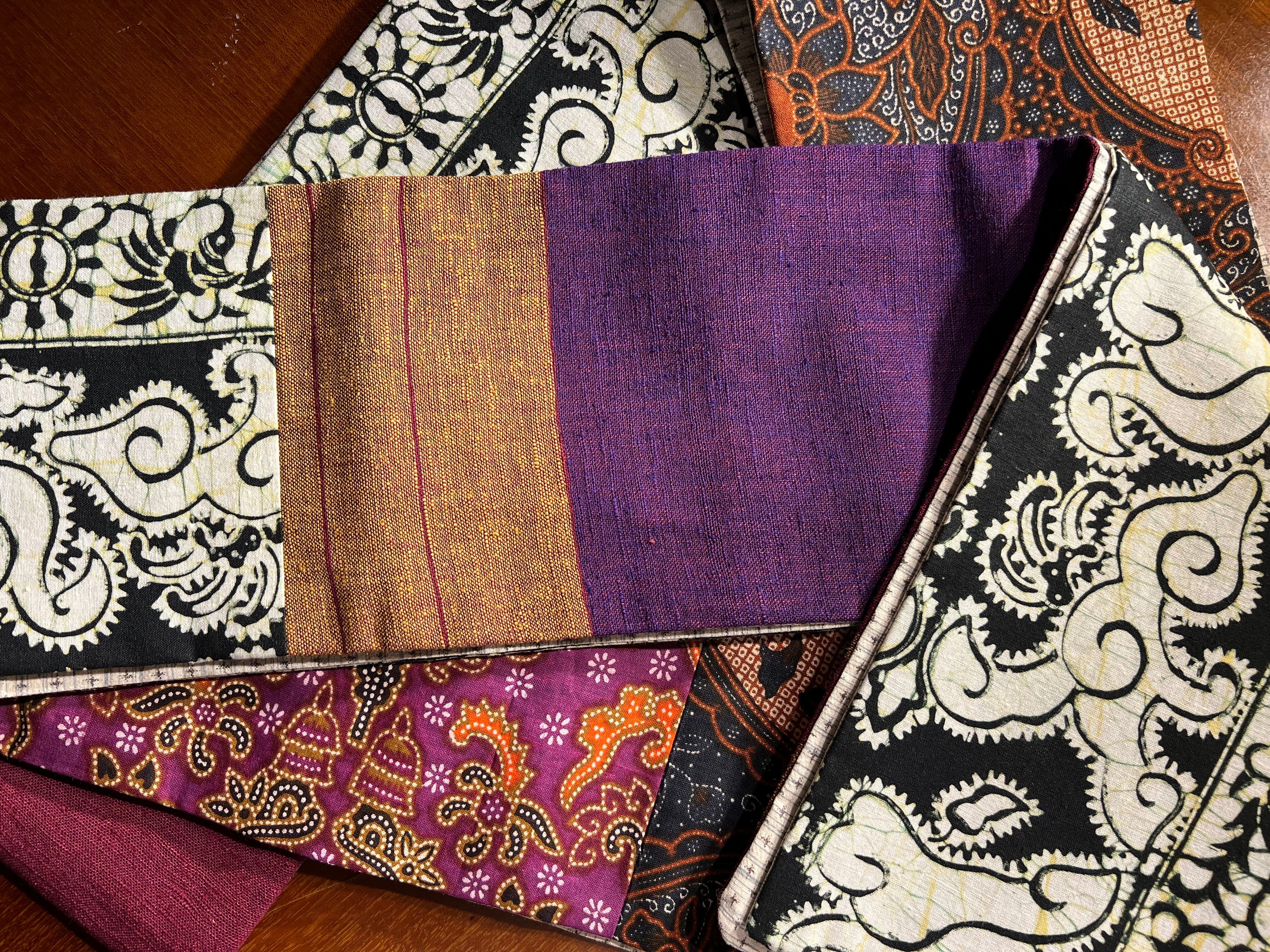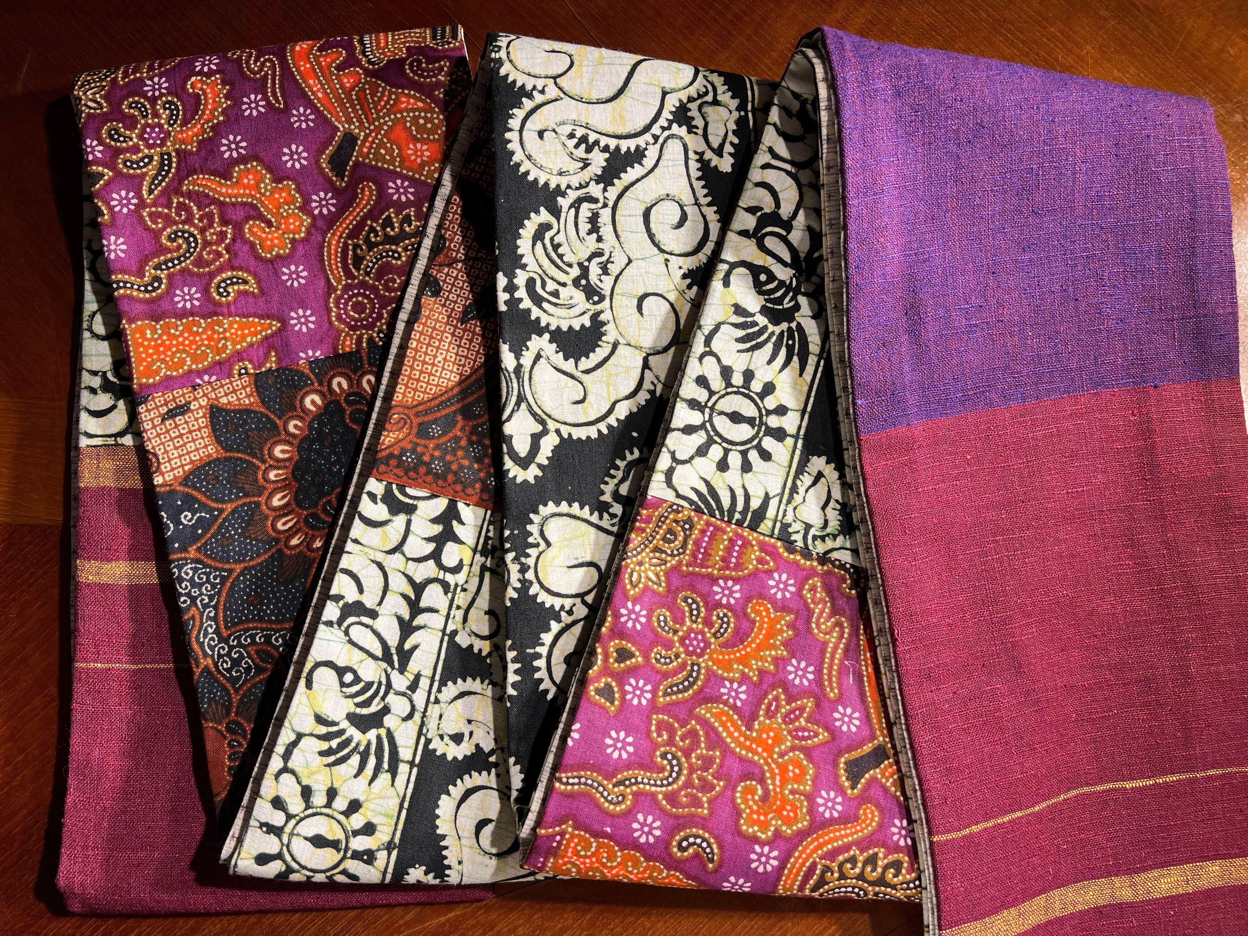 表面はバティック生地や紬の反物など