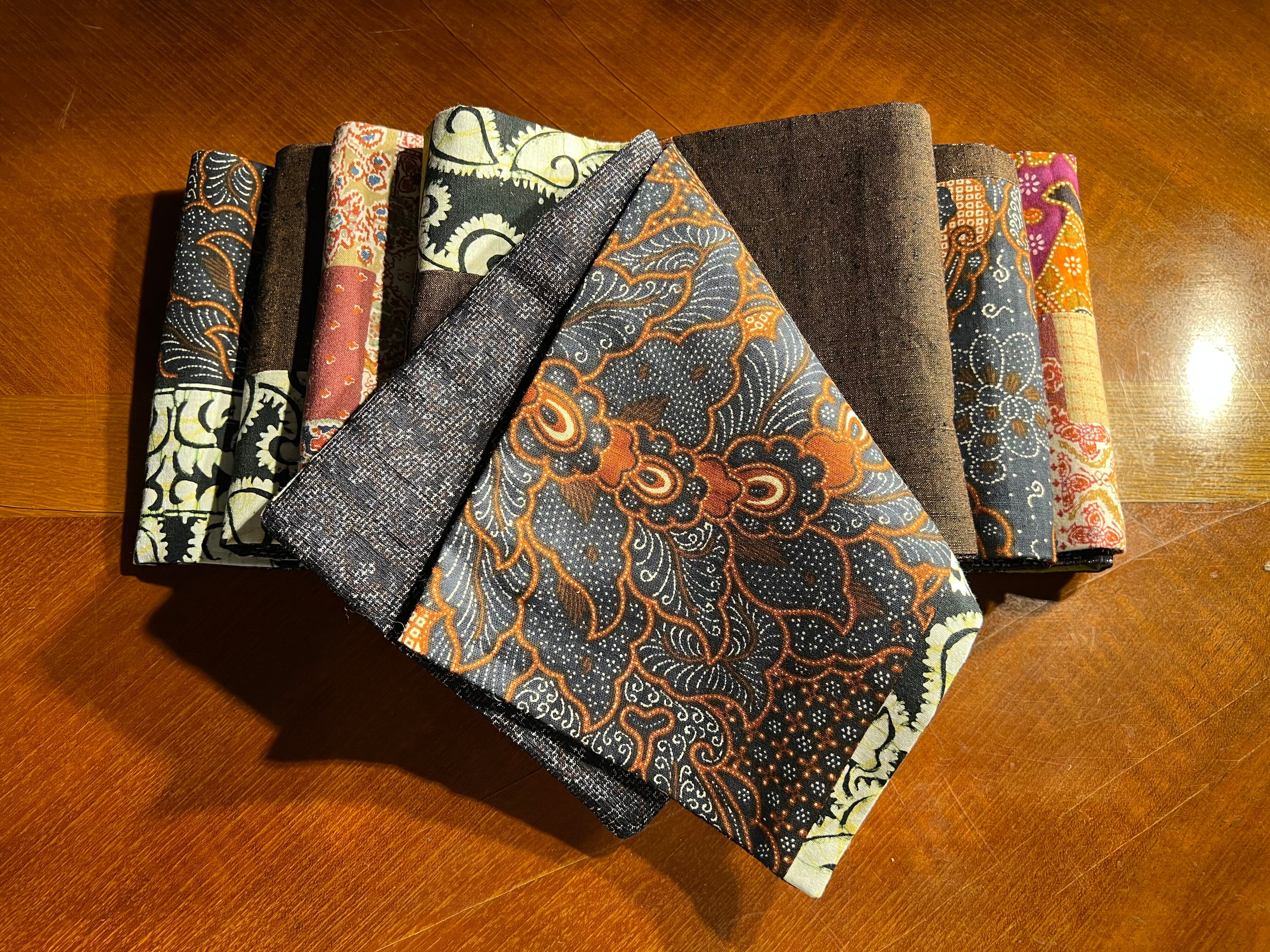 バティック生地と紬の反物から