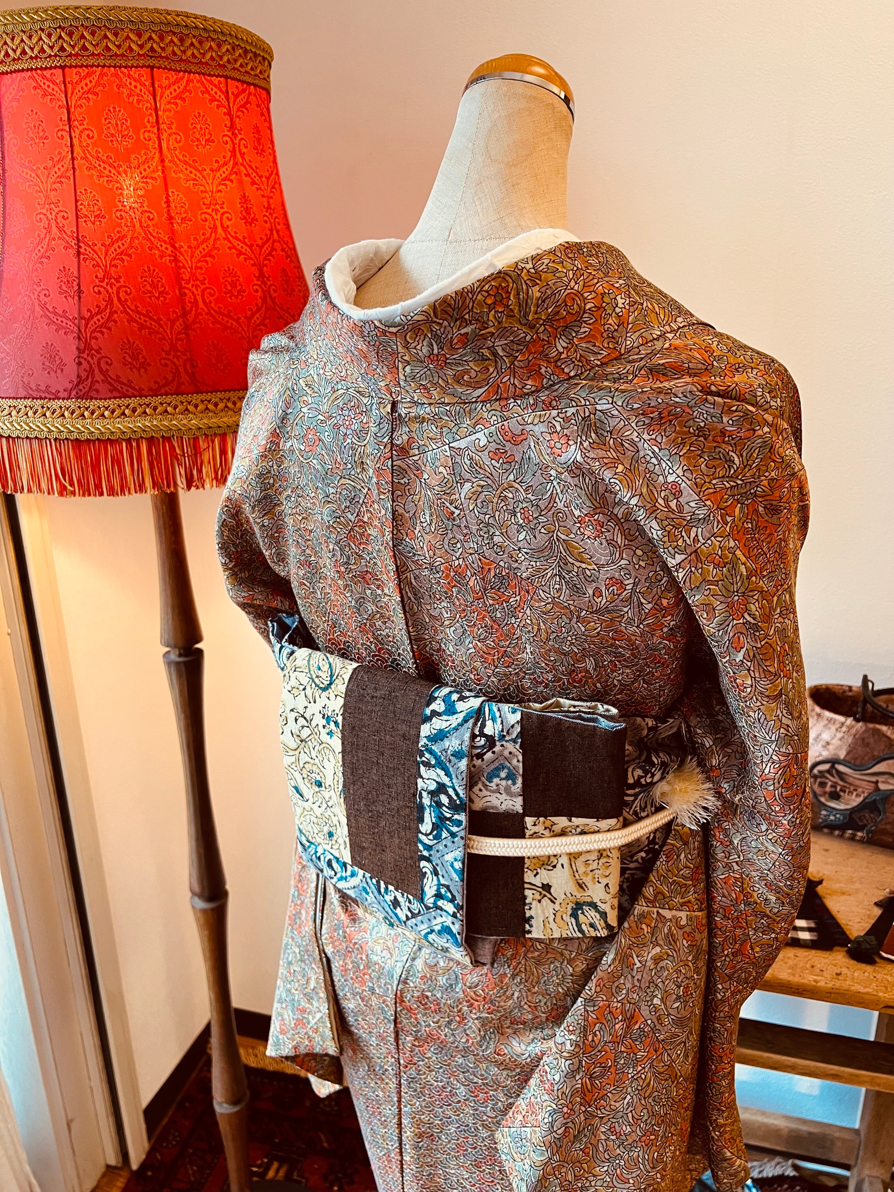 インドの伝統生地「カラムカリ」を丁寧に組み合わせた世界にひとつだけのぱっちわーく帯を
