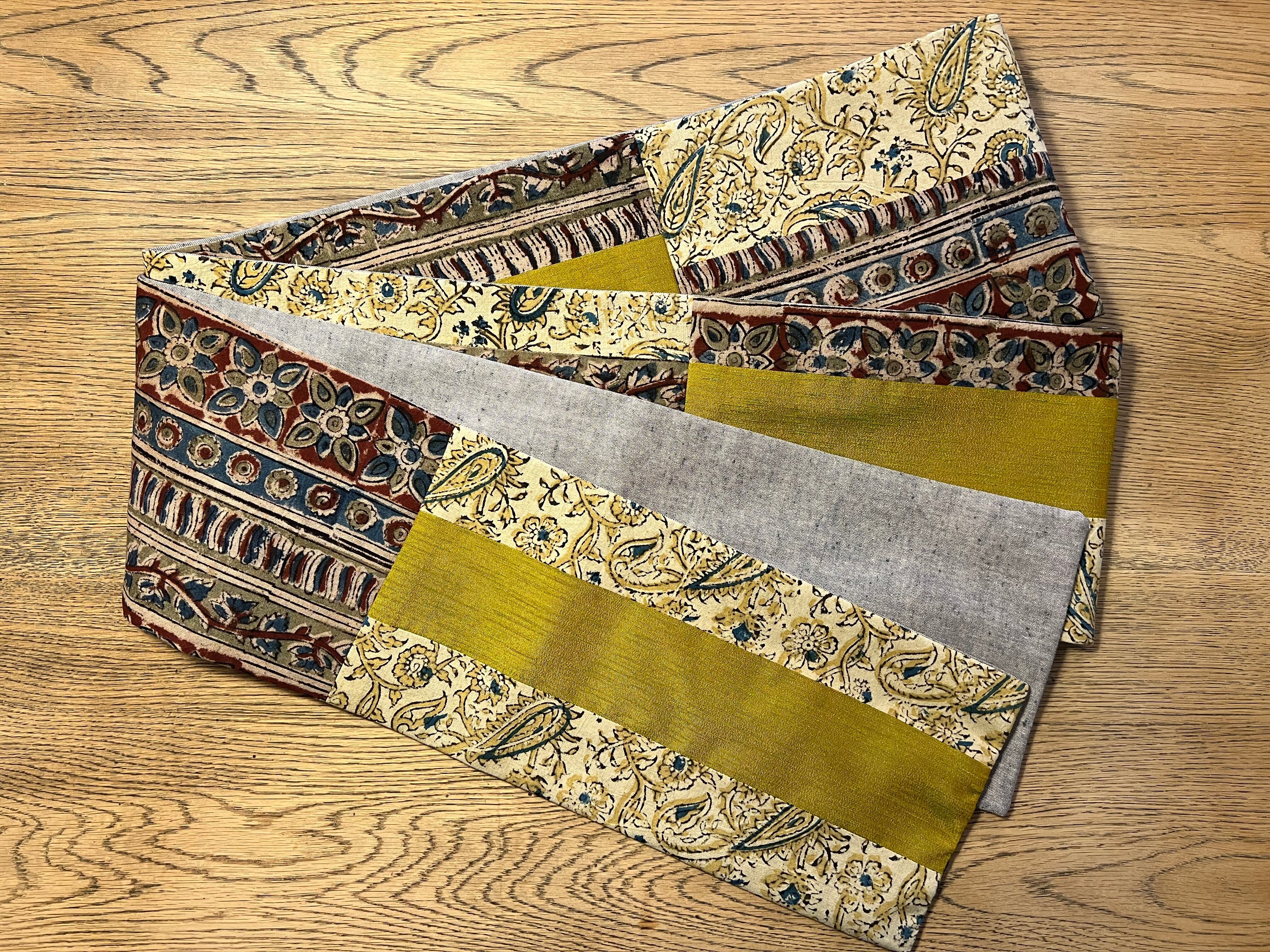 インドの伝統生地「カラムカリ」を丁寧に組み合わせた世界にひとつだけのぱっちわーく帯を