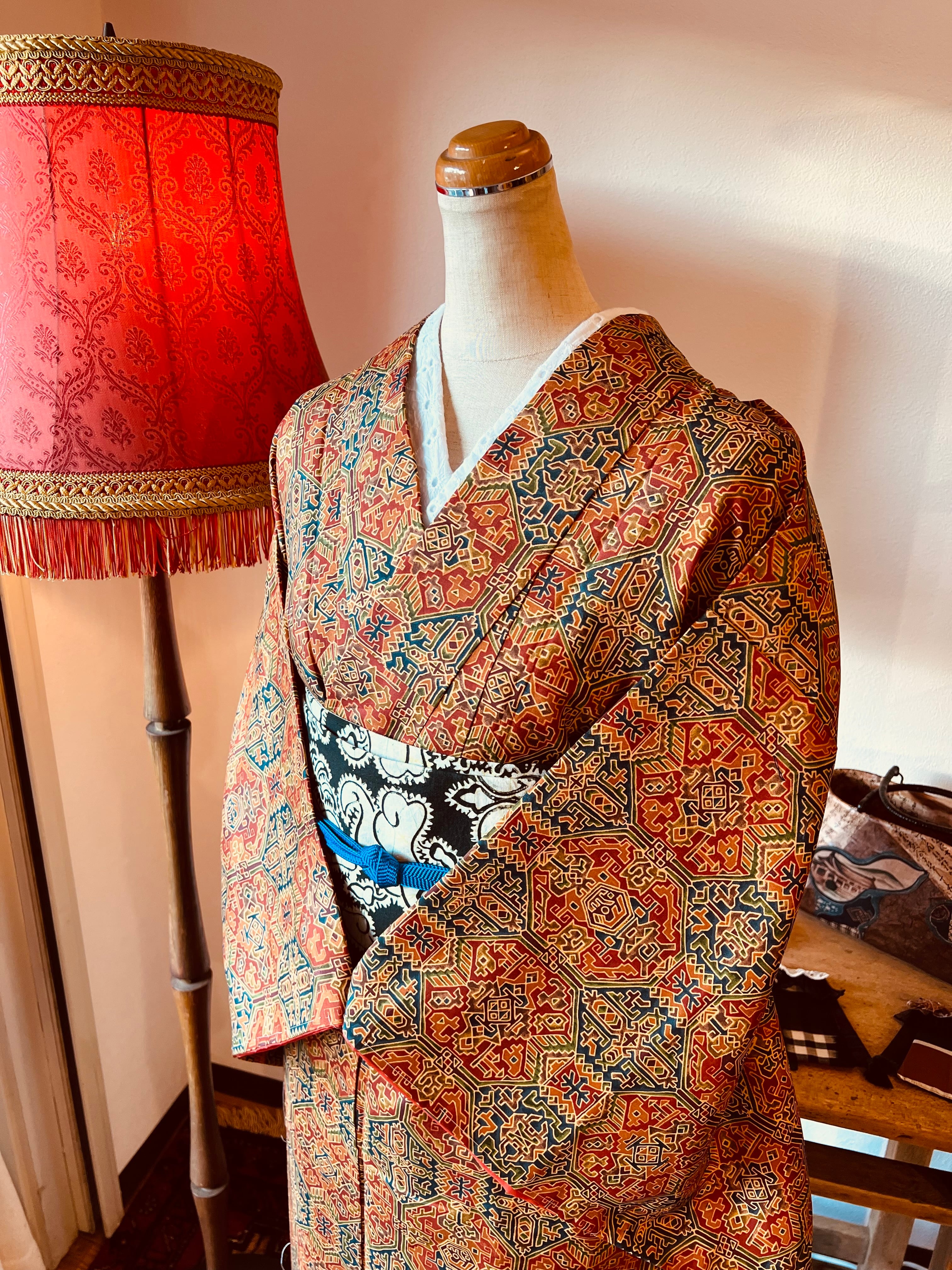 カラー:オレンジ✖️深緑✖️赤✖️幾何学柄