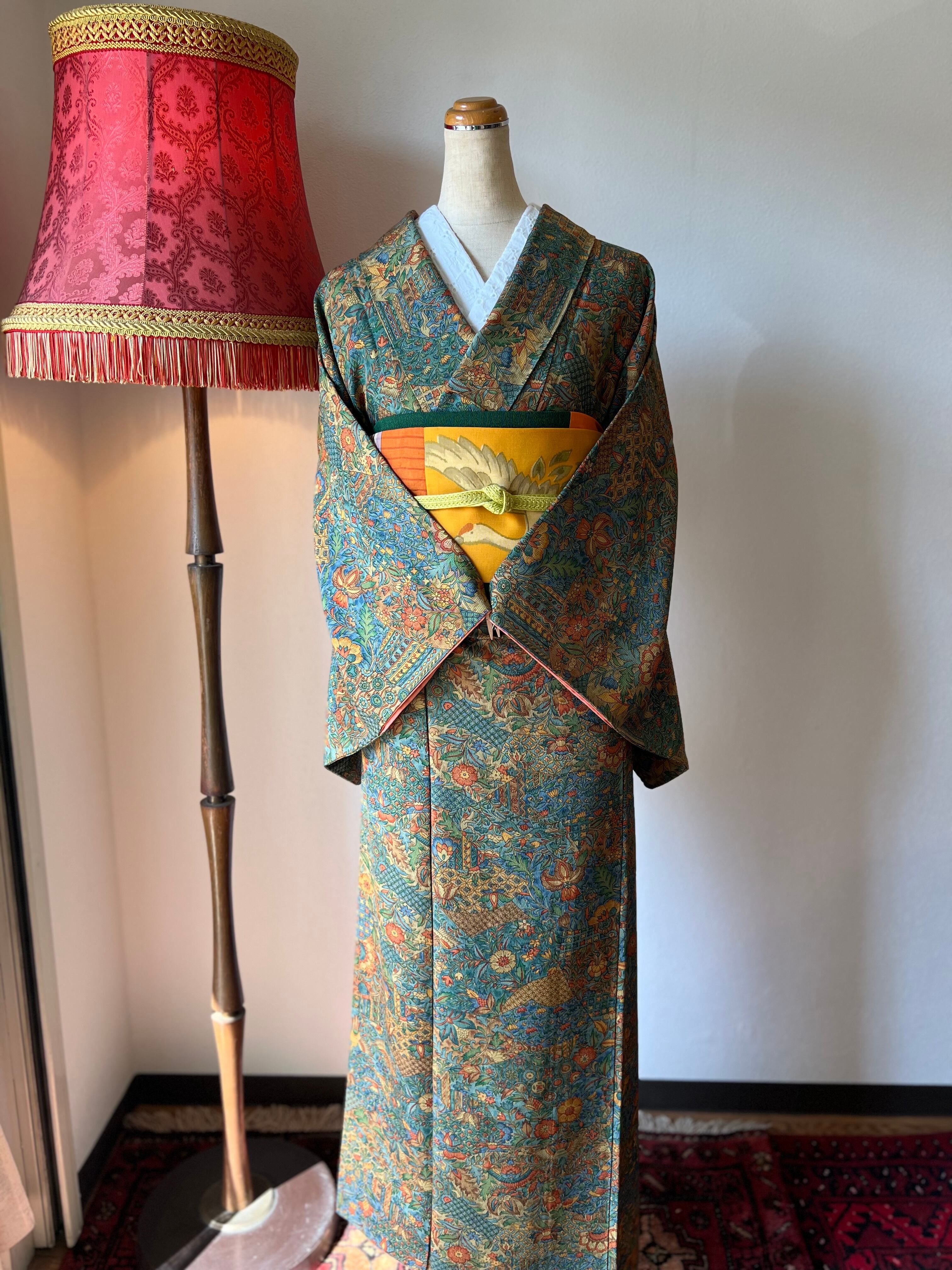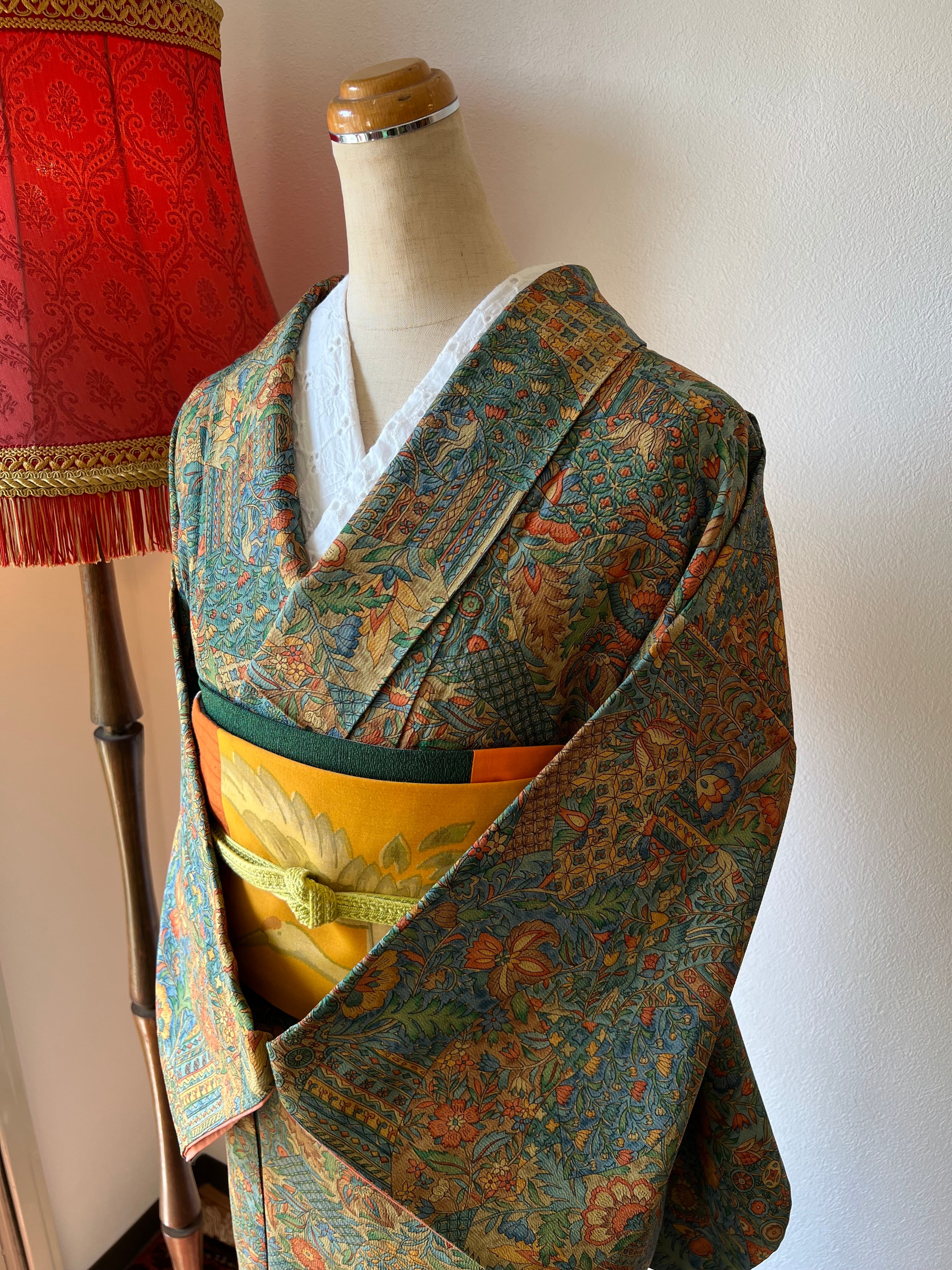 (帯はBASEサイト掲載の更紗ぱっちわーく帯78を合わせております。)