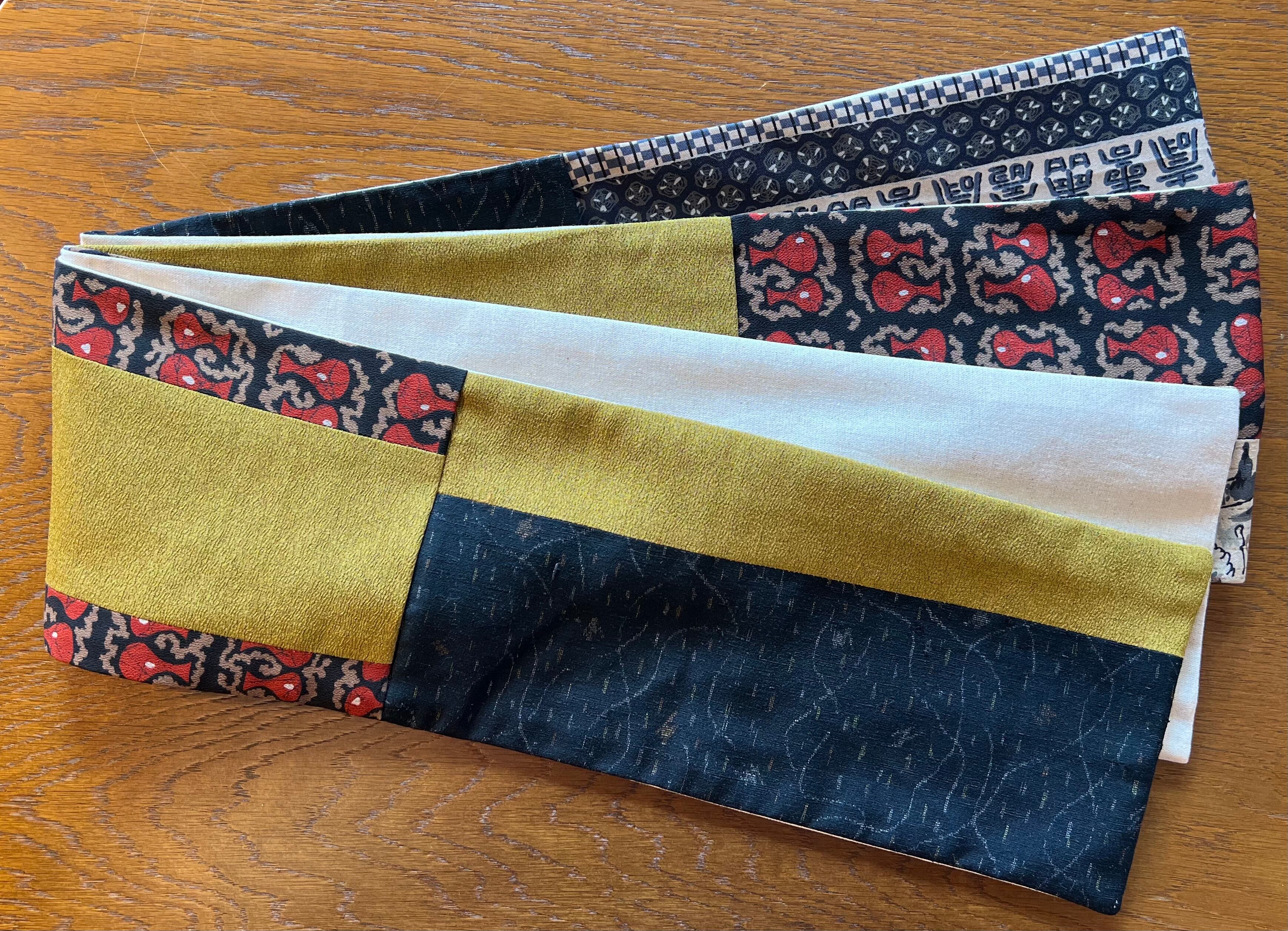 【新作】古布 パッチワーク半幅帯 89