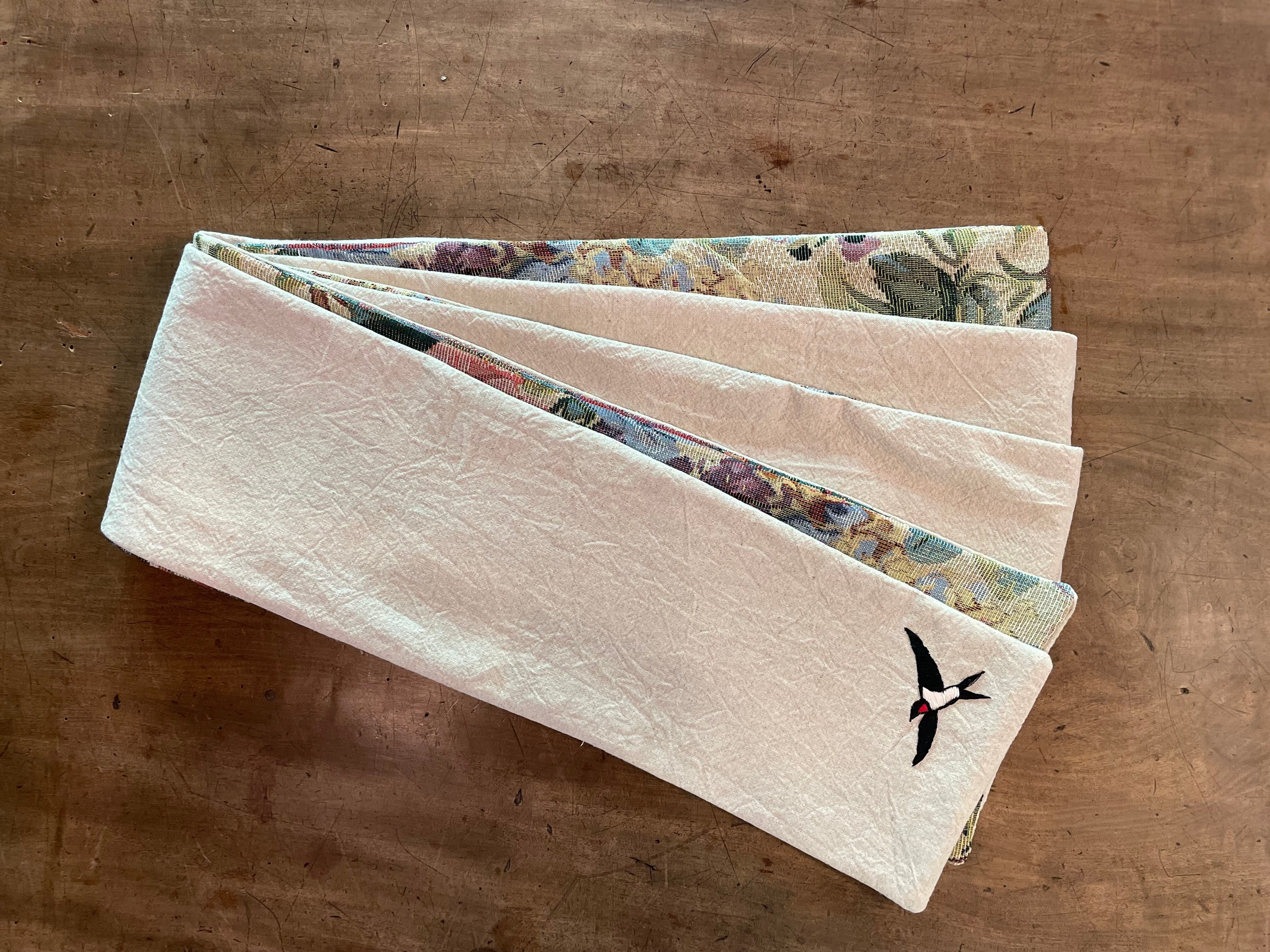 ハンドメイド半幅帯 つばめ刺繍