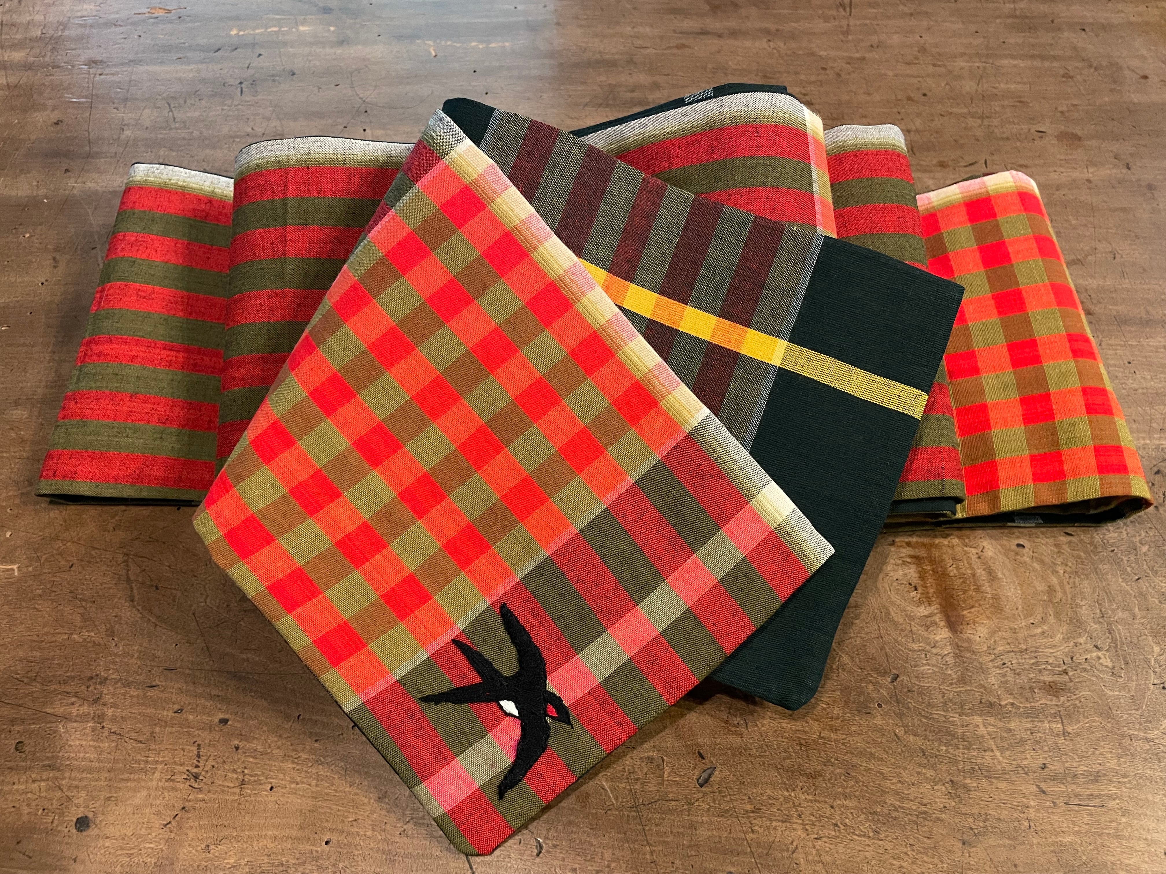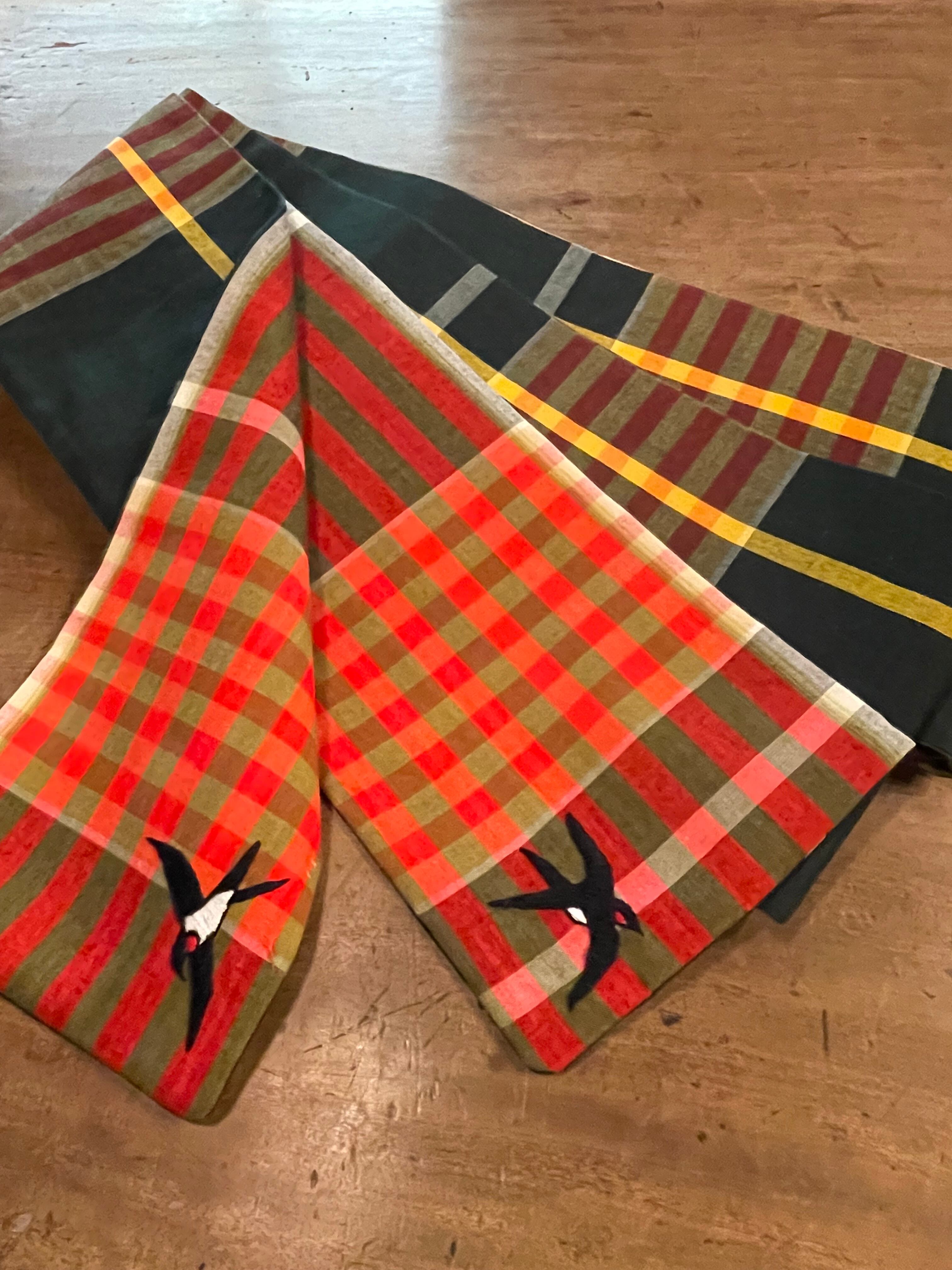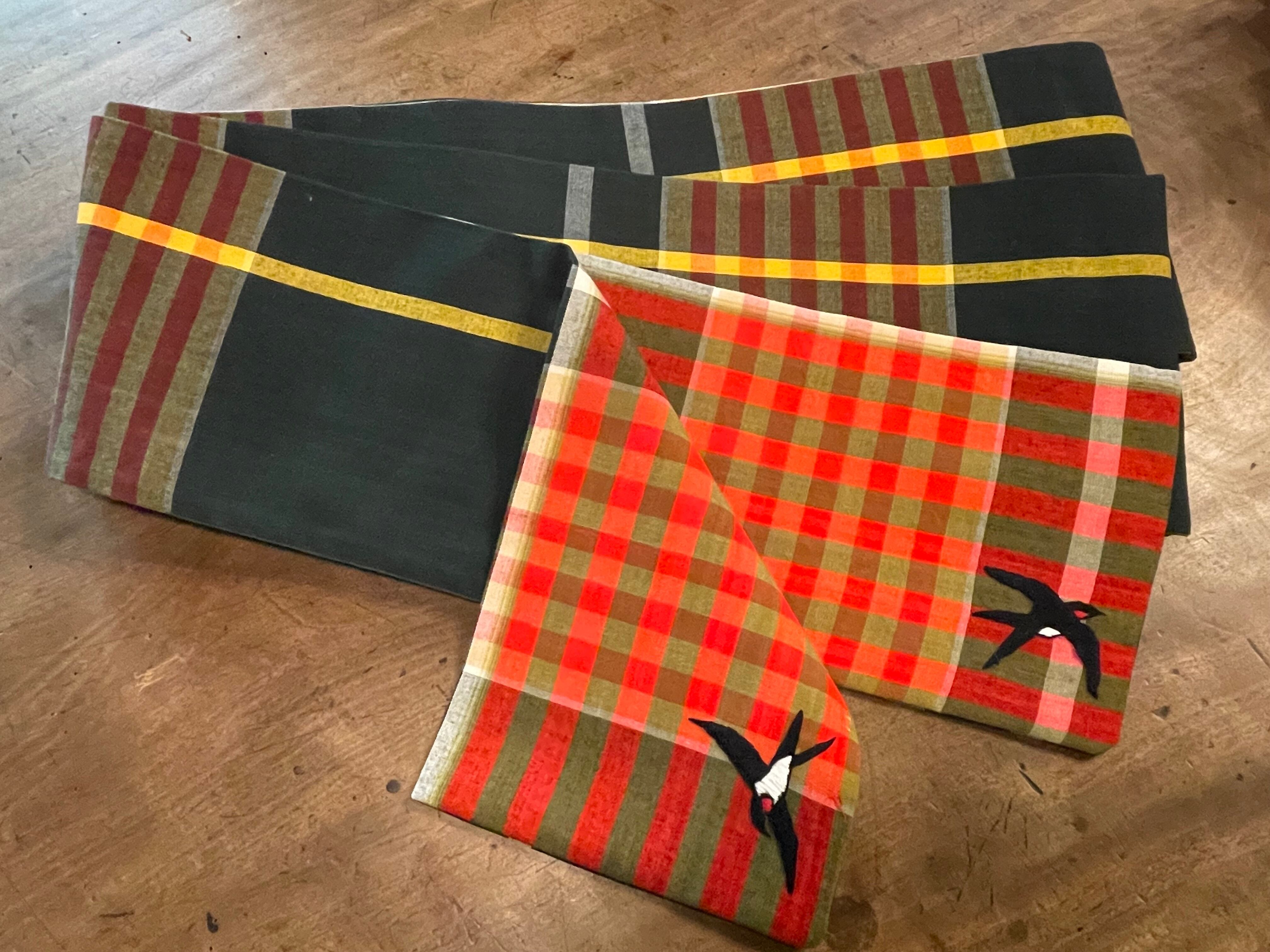 ハンドメイド半幅帯 青梅夜具地 燕刺繍