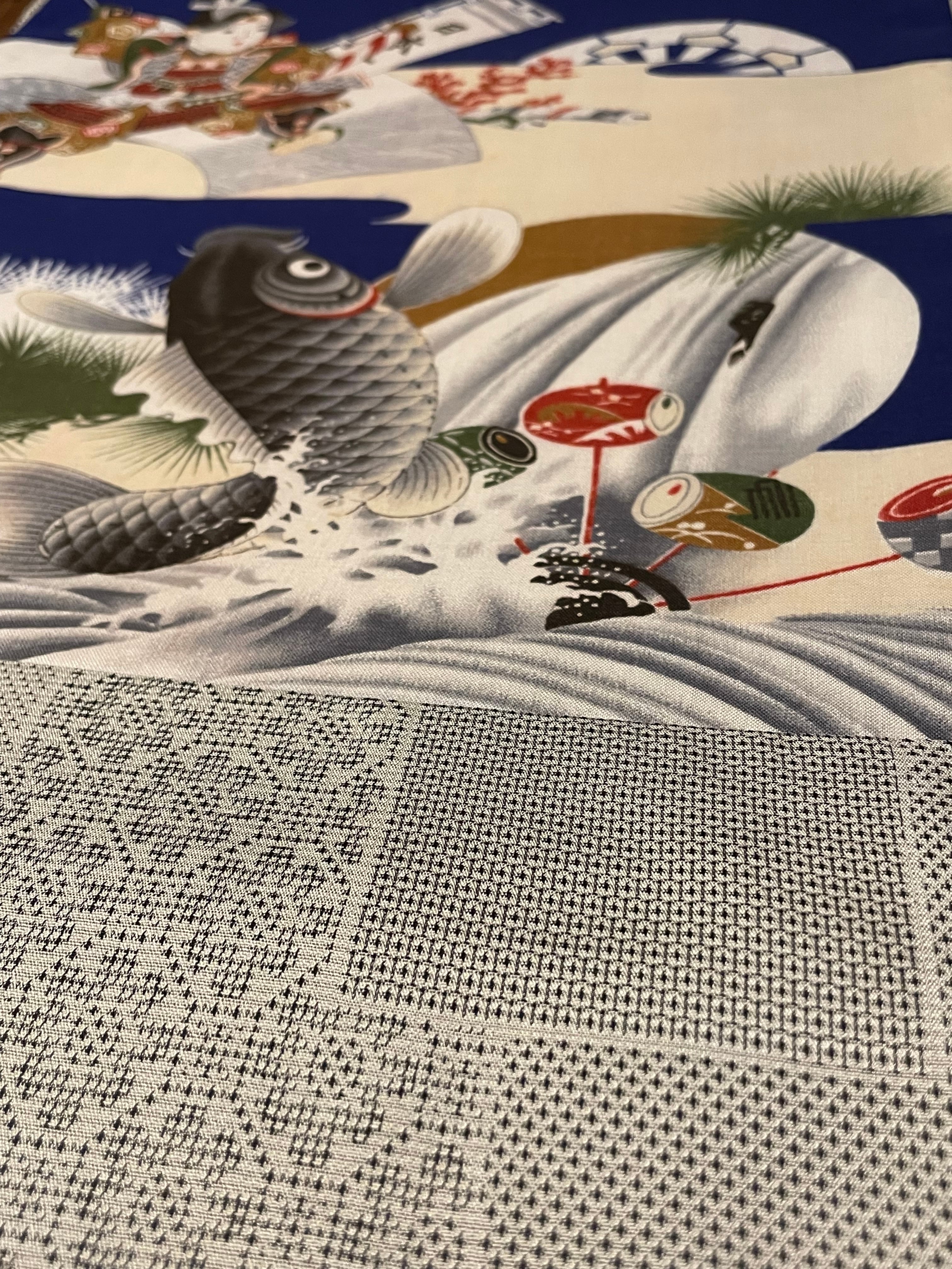 色・柄: 桃太郎と鯉の古布(大島紬の反物)